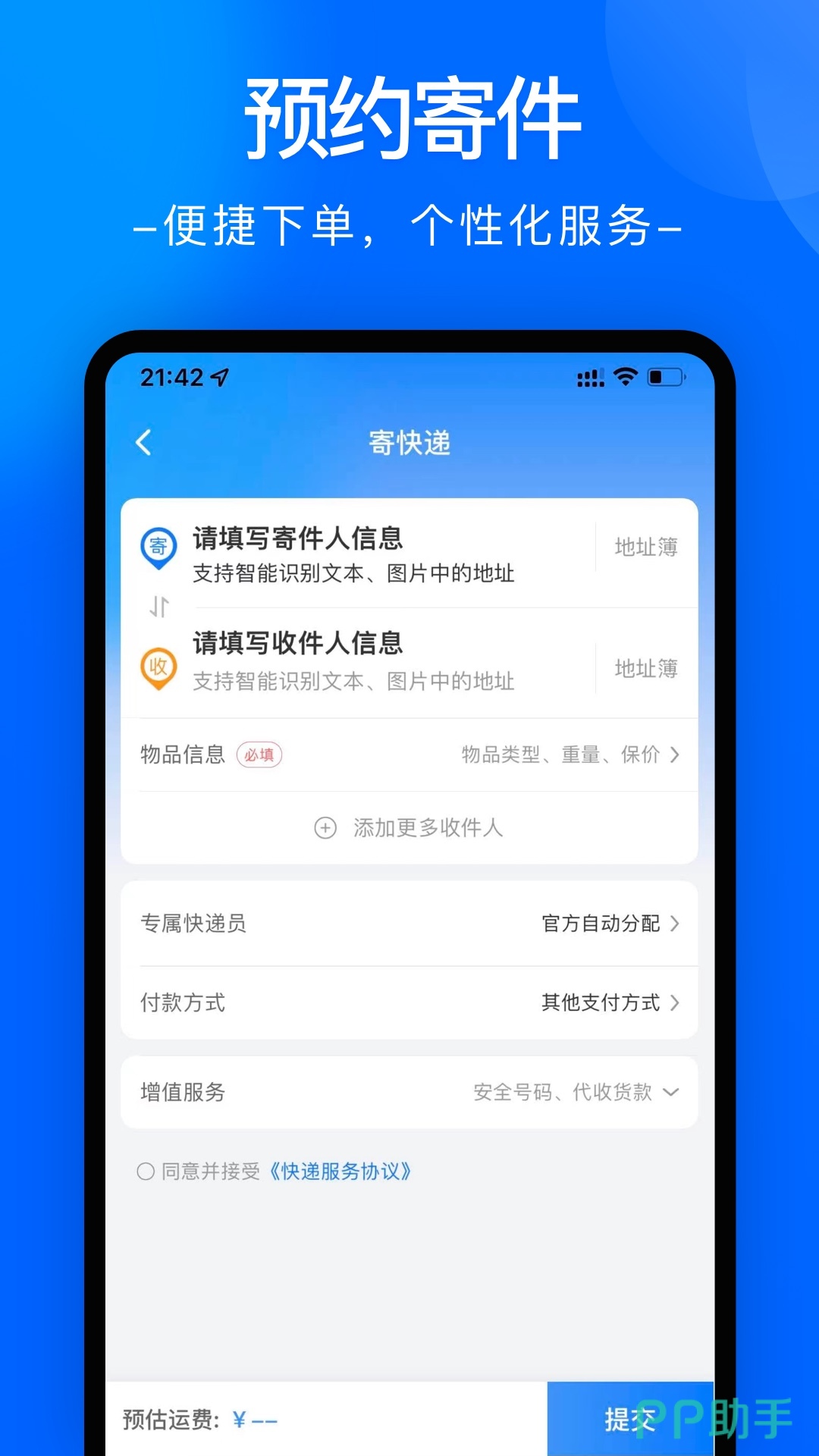 丰巢除了可以全天为用户提供开快递柜的服务外,同样可以让用户享受到一键寄快递的服务。只需要在手机端填入我们要发出的物品、地址,丰巢便能自动帮我们计算住一个大概的费用,从而供用户参考。