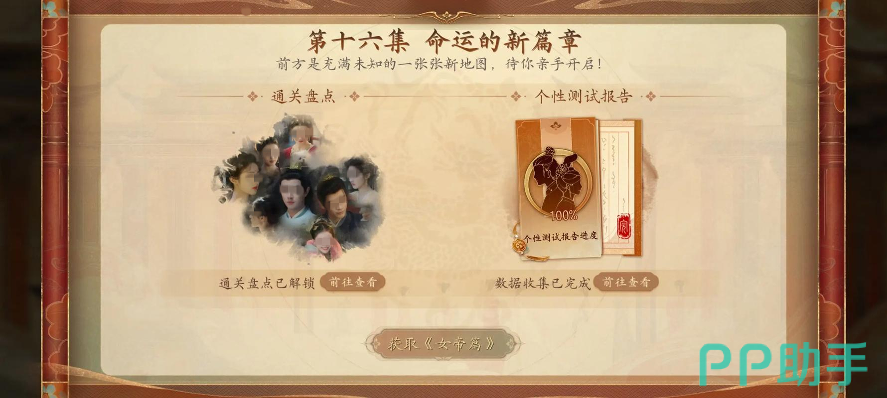 区别于传统线性互动剧,《盛世天下》女帝篇赋予玩家真实“执掌朝纲”的体验:批阅奏章、裁决刑狱、平衡六部、应对藩镇,每一步选择都将影响朝局走向与角色命运。游戏内置动态权谋系统,事件链环环相扣,无固定结局。通关后生成专属帝王人格测评报告,涵盖“绝命鹤顶红”“卷王见手青”等趣味称号,兼具娱乐性与代入感。