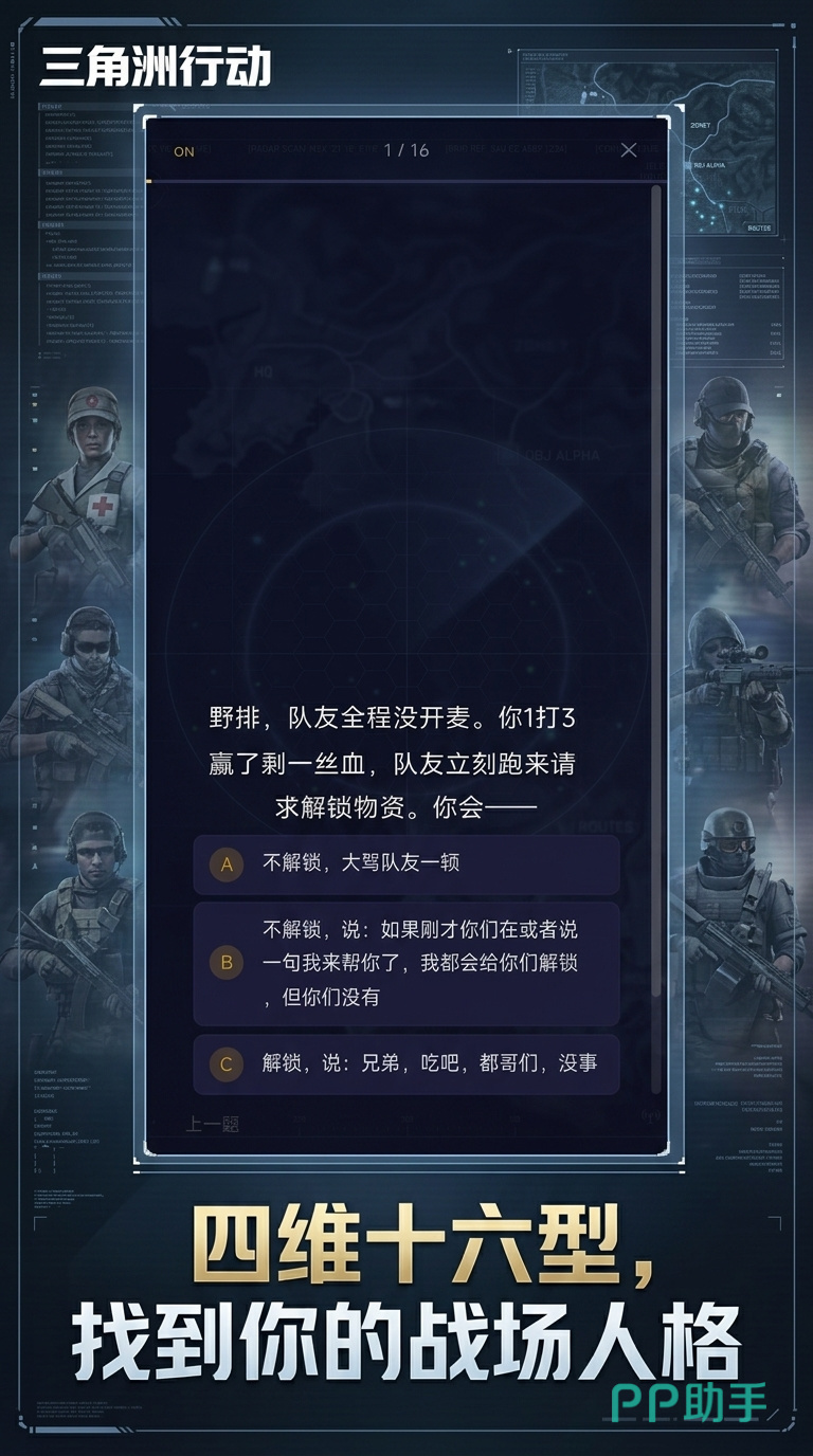 《三角洲行动》作为一款广受玩家关注的战术射击类游戏,其IP影响力持续扩大,围绕该IP衍生出的多款功能型产品也陆续进入大众视野。本文重点介绍的并非玩法复刻或简化版手游,而是一款以心理学模型为基础、专为《三角洲行动》玩家定制的性格测评工具——【三角洲行动人格测试】。该应用已于近期开启全平台预约,但官方尚未公布确切的正式上线日期。