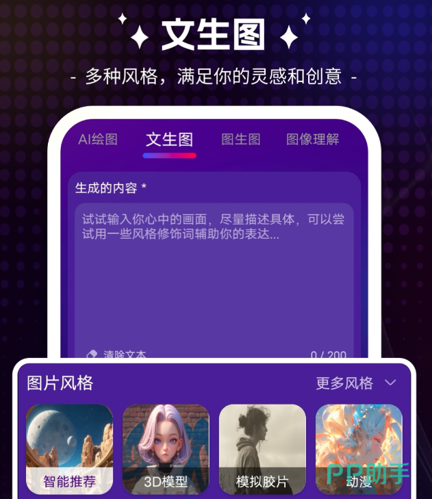 主打“一句话生成画面”,支持自然语言描述直接输出图像,大幅降低创意启动门槛。内置梵高、莫奈、毕加索等数十种经典艺术风格滤镜,风格切换即时生效,质感差异明显。除AI生成功能外,其手绘模块同样扎实:涵盖铅笔、水彩、油画、喷枪等多类模拟笔刷;色彩调节支持HSV/RGB双模式,精度达0.1单位;图层系统支持混合模式、蒙版及不透明度独立控制;另提供照片风格迁移与画质增强功能,适用于快速产出高质量视觉稿。