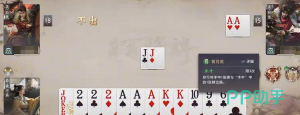 主动技“木牛”为单次限定技,允许玩家从手牌或木牛中任选两张牌进行置换。该技能不改变当前出牌动作,但能显著优化手牌结构——无论是补足顺子、强化炸弹组合,还是预留关键功能牌,均依赖此次精准调度。由于使用次数唯一,决策必须建立在对全局局势的综合判断之上,稍有偏差便可能影响整局胜负走向。