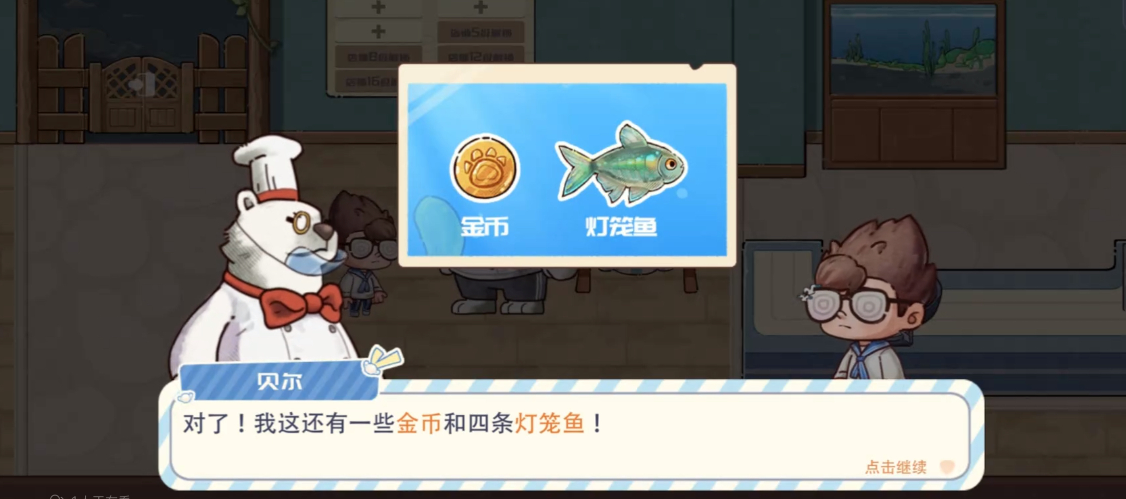 在游戏里特定的装饰组合会触发专属套装效果,可以帮助增加客流量,还可以增加顾客的额外消费,进一步提升餐厅的收益。菜品研发是餐厅竞争中的核心要素,但是研发的食材需要玩家前往海域去进行探索和收集,玩家通过潜艇前往不同的海域,再利用鱼叉捕鱼,以此获得新鲜的食材。不过在捕鱼的过程中玩家需要注意氧气值的消耗,如果氧气值过低则需要返回潜艇恢复,否则会导致探险失败丢失食材。