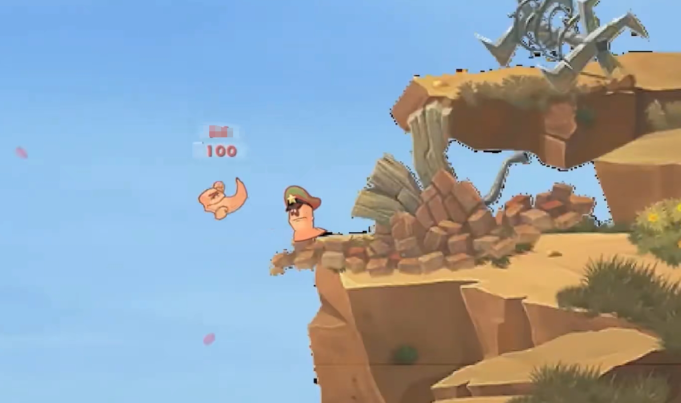 要注意,每条虫子都有相同的固定血量,一旦被攻击或是从高处掉落,都会损失血量,并且只要血量变为零便会被视为战败,因此玩家不光要考虑如何去战胜对手的问题,还要利用好地图里的地形,令敌方没那么容易就能攻击到自己,保全自己的血量。当然了,除了用直接情空敌人血量的方式来赢下对手外,玩家们也可剑走偏锋,通过将敌人击出可站立区域的方式令他们直接死亡。这一方式在实战里极为使用,而且实现此方式的手段也格外多,玩家既可利用爆炸的余波将敌人震飞出可站立区域,也能将敌人脚下的可站立区域挖穿,让他直接掉下去。不管哪种手段,只要能让敌人无法在可站立区立足,便都是可利用的好方法,玩家也可大开脑洞,在实战中自行去进行尝试。