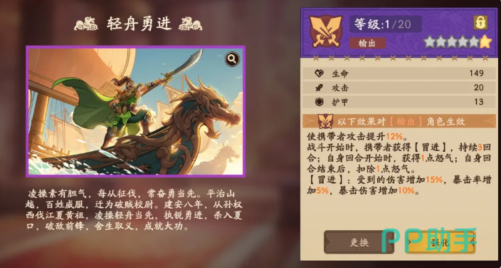 没有火烧赤壁的话,大家次选可以用轻舟勇进,这个溯影的话,目前给他带来的是替代效果,能够在关键回合当中给周瑜带来一部分的怒气回充,这样的话他用大招的时候也会更加顺利一些,并且让他在攻击效果上面提升12%的效果,在战斗一开始的时候,只要周瑜身上有足够多的冒进状态加成,他后续在自身回合行动的时候就可以获得一点怒气的回升效果,而且在周瑜的行动回合结束之后,他也会扣除掉一点怒气,这里的冒进状态就是让敌方受到的伤害增加10%,这里的冒进就是让周瑜受到敌方伤害的时候,会增加15%的数值时,自身的暴击概率增加5%,而且暴击伤害增加10%,所以他自身虽然有一定的损失,但是用来强化输出确实是非常不错的。