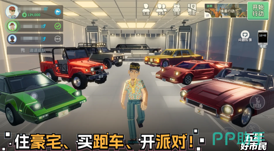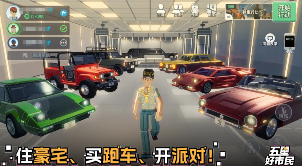 除战斗系统外,游戏深度拓展生活模拟维度:支持自定义角色外观(含数十套主题服饰与配饰)、自由布置私人别墅空间、在街角咖啡馆发起社交对话、组织限时主题派对等沉浸式交互。所有载具与武器均可通过任务奖励、探索收集或声望兑换获取,无强制付费绑定设定。