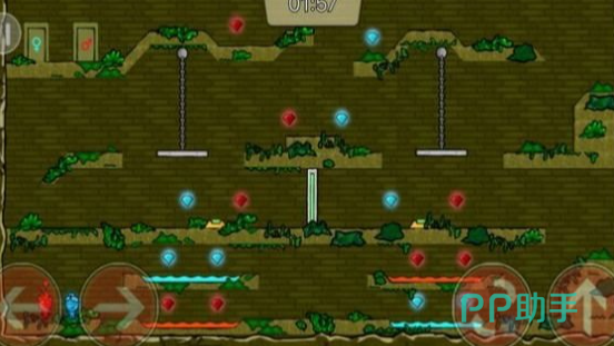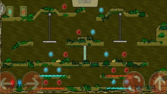 红蓝冰火闯神殿,轻量无压乐无边,你需要在神秘的森林神殿中闯关,收集对应颜色的宝石,避开各自惧怕的危险区域,火人不能碰水,冰人不能碰火,两者都要避开绿色毒沼泽,稍有不慎就会闯关失败,考验玩家的反应能力和操作技巧,关卡加载速度快,占用手机内存小,低配手机也能流畅运行,不会出现卡顿问题,有50多个精心设计的关卡,每个关卡都有独特机关,玩法不重复。