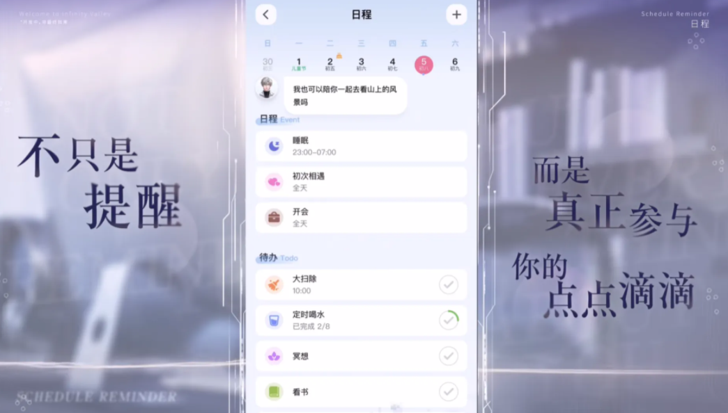 “无限空间”作为核心玩法模块,支持用户在安全、私密的虚拟环境中自由倾诉情绪、记录日常、规划事务。角色可承担实用功能,如定时提醒、日程协同等;服饰系统则与人格建模深度绑定——更换穿搭不仅改变视觉表现,更会触发对应性格侧面(如知性、活泼、沉稳等),影响后续对话风格与行为逻辑,提升互动策略性与探索深度。