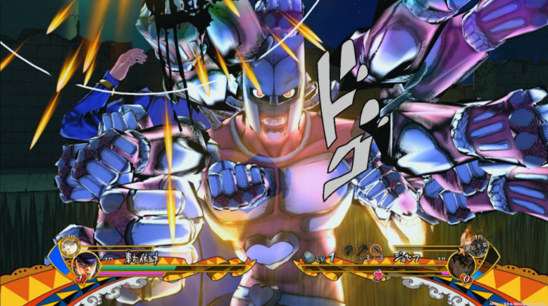 一个JOJO题材的3D格斗游戏,游戏采用原创平行世界剧情,玩家扮演的空条承太郎要穿梭不同时代,联合历代JOJO系列角色对抗被操控的反派势力,战斗采用2v2实时组队对抗,有轻重攻击、替身技能,还可以组合两人打连携技。游戏收录了从第一部到第八部的53个角色,每个角色的替身招式都贴合原作。