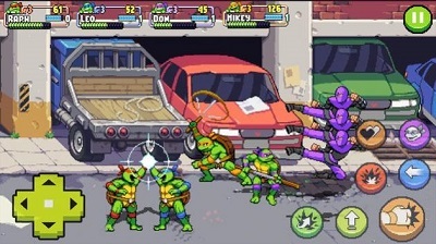 忍者神龟对打游戏手机版。忍者神龟也可以说是80后玩家们的童年记忆了,好像也就那个年代才有这么多的国外动画被引进,而且还是直接在电视台上播放,而随着80后在游戏圈里的话语权越来越高,有不少曾经的老动漫都被搬上了手机游戏,忍者神龟这个经典IP也不例外,毕竟在之前这个IP就经常出现在FC和PC端,而手游也基本上延续了这个IP以格斗游戏为主的风格。