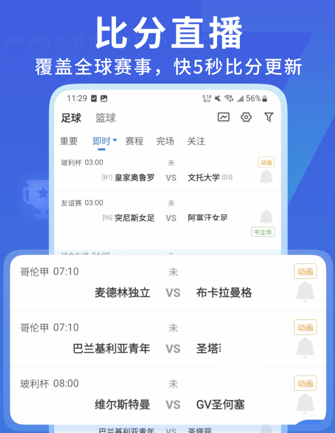 比赛还没看见画面,比分提醒先一步跳出来,那种感觉对老球迷很有吸引力。7M足球实时比分把速度和数据结合得很紧,很多场次刚有动静,消息就已经到了。联赛覆盖很广,冷门比赛也不容易漏掉,所以查赛程时会省下不少时间。它不只是给出简单结果,赛前和赛后的数据内容也接得很完整,走势变化能顺着看下来。