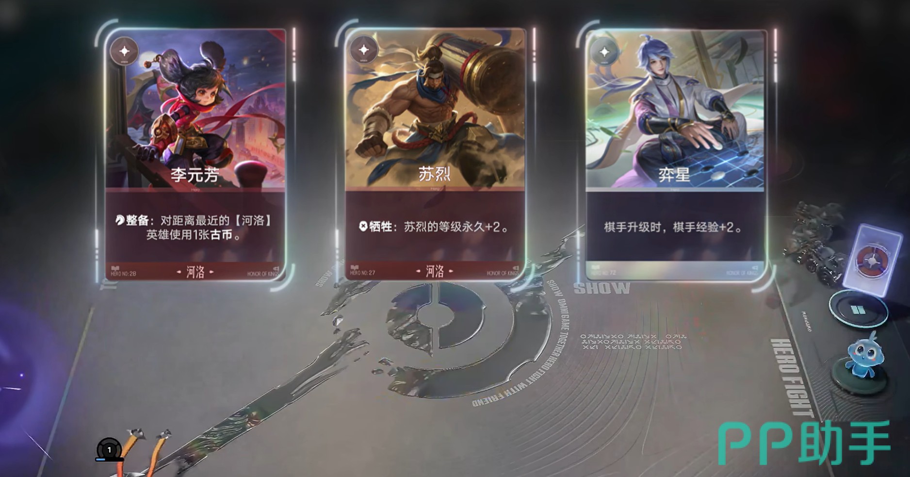 该流派核心机制在于“牺牲转化”:河洛阵营中具备阵亡触发效果的单位离场后,可为李信提供临时等级加成;再通过明世隐的卡牌技能,将临时等级固化为永久等级。因此,牺牲单位数量越多,李信成长速度越快,成型节奏越稳。开局前3回合建议优先搜寻李元芳、苏烈与奕星,三者协同可显著加快升本效率;若遇钟馗或铠等优质前排,亦可酌情保留以增强前期生存能力。首次拍卖阶段,应重点锁定河洛系牺牲型英雄或明世隐本人。