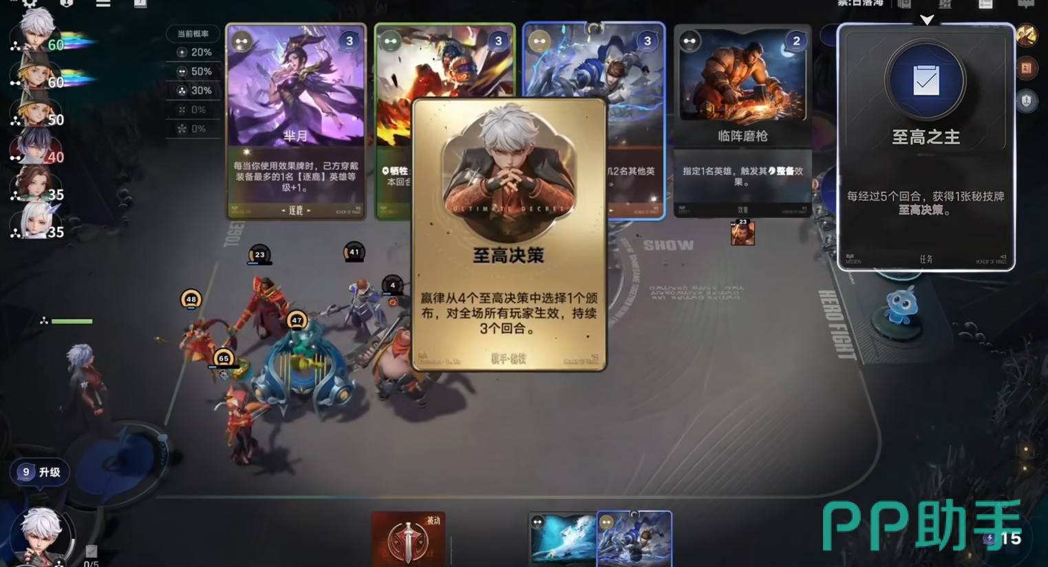 庄小鱼的核心优势在于极高的阵容构筑效率。“梦境游戏”技能使其每提升1级即可获得1张随机效果牌,涵盖英雄升阶、优质卡牌直取等实用功能,显著缓解新手在前期因刷新不顺导致的战力断层问题。其秘技“如梦似幻”在5级与6级时各触发1次,消耗8点能量后,可依据当前场上阵营自动匹配对应高阶核心英雄,大幅缩短中期成型周期。