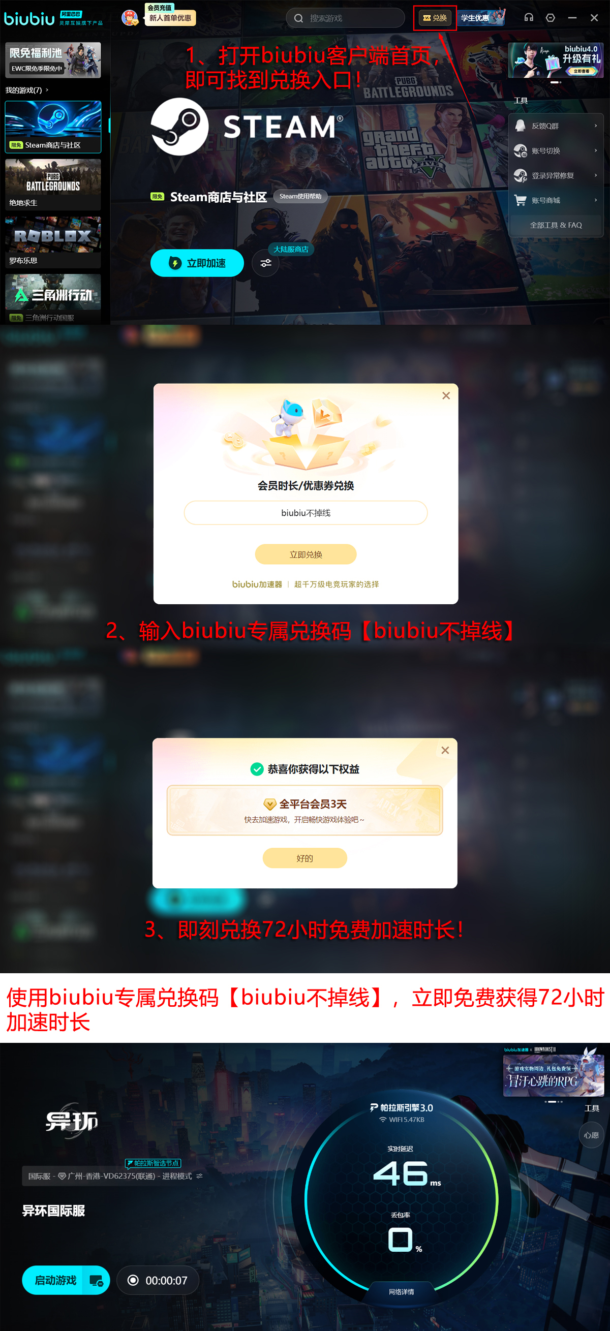 为保障首发阶段的网络稳定性与低延迟表现,推荐使用专为大型在线游戏优化的biubiu加速器。该工具搭载帕拉斯3.0加速引擎,在节点调度、协议适配与丢包补偿方面具备显著技术优势。新用户注册后可即时获得24小时免费时长,叠加礼包码【biubiu不掉线】兑换的72小时权益,总计可享96小时无门槛加速服务。后续活跃行为还可持续解锁额外加速资源。
