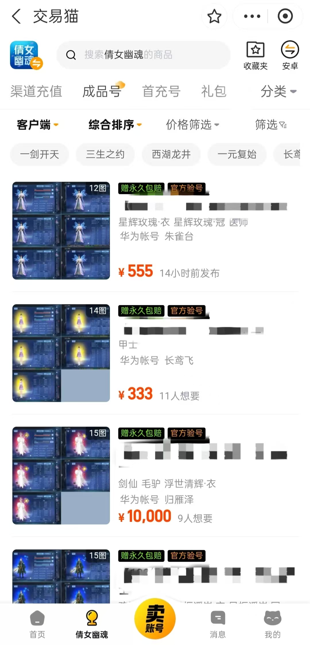 综上所述,在众多游戏账号交易平台中,交易猫凭借严格的验号标准、闭环式资金监管、全链路人工支持及行业首创的永久赔付机制,成为《倩女幽魂》玩家选购高等级账号时兼具安全性、效率性与服务确定性的首选渠道。平台活跃用户规模庞大,账号库存丰富且分类清晰,从入门级到满配神装号均有稳定供应,可满足不同预算与战力需求的玩家快速匹配目标资源。