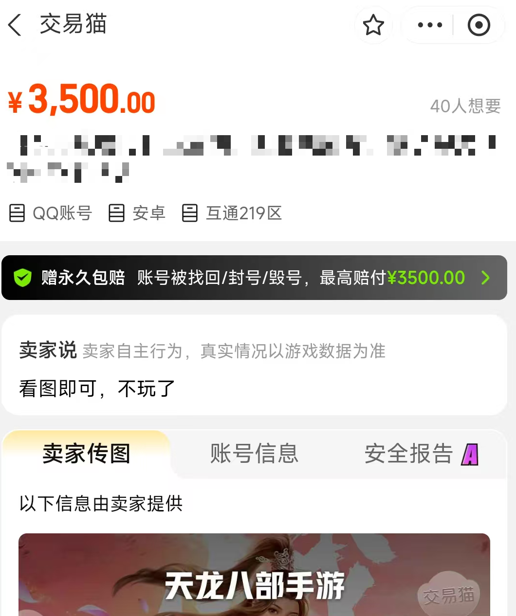 账号安全性是买家最关注的核心问题之一。若购入后短期内遭遇异常封禁或被盗,将造成不可逆的经济损失与体验中断。交易猫平台为此推出“安心购”保障机制:凡经平台认证上架的账号,如在约定保障期内发生非用户操作导致的账号丢失,平台将依据规则进行全额赔付。此外,平台已建立覆盖超100款主流游戏的官方验号体系,对天龙八部手游账号的等级、装备、充值记录、角色状态等关键信息进行多维度核验,确保所售账号数据真实、完整、可追溯。