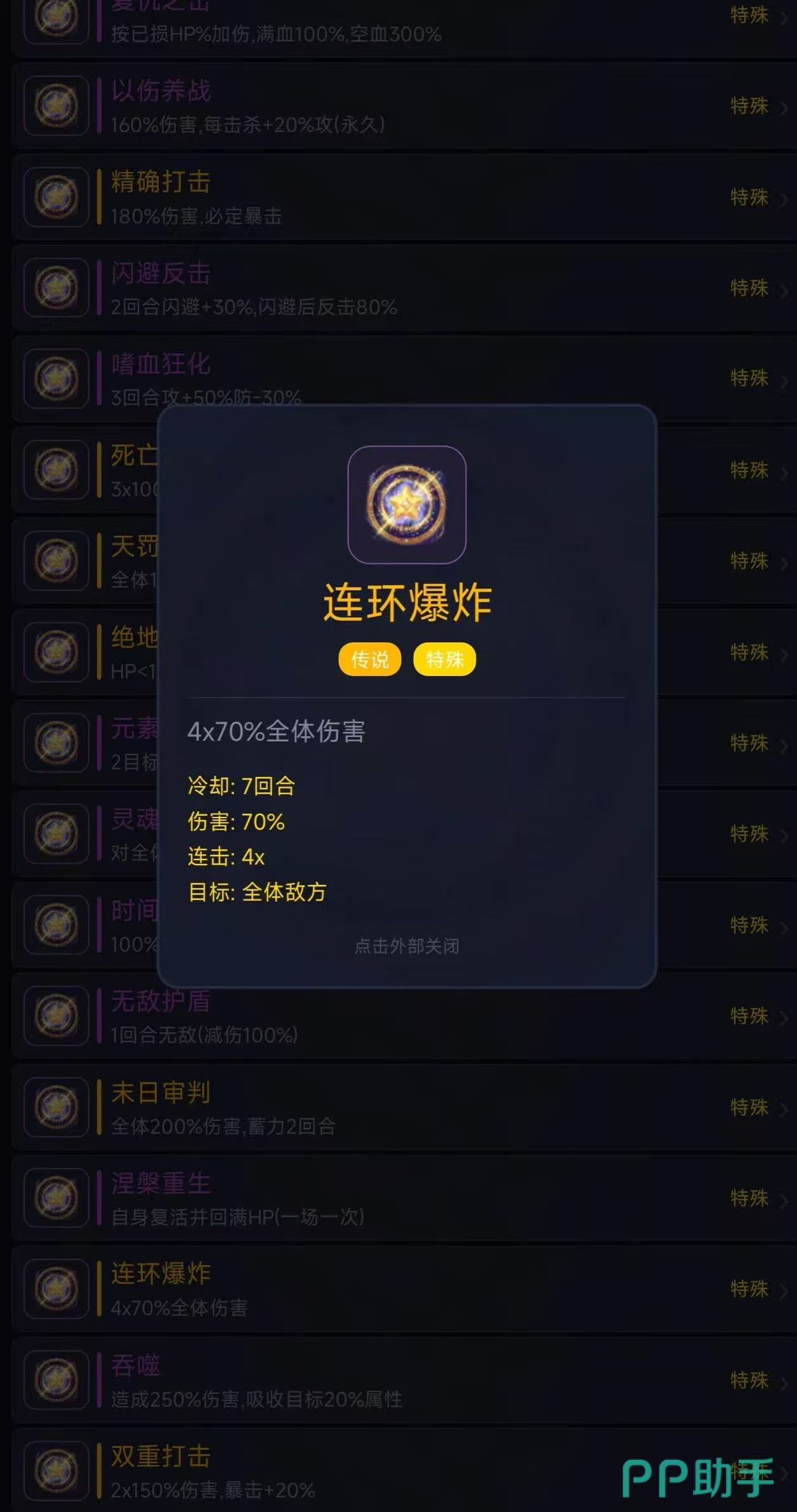 技能组合方面,主动技“连环爆炸”覆盖全场,适用于快速清杂;搭配吸血类被动技能,可同步提升续航稳定性。辅助向技能“吞噬”兼具削弱敌方属性与增强己方伤害双重效果,实战容错率高。“灵魂收割”则专为高血量目标设计,按百分比结算伤害,在对抗Boss时能显著缩短战斗时长,优化整体推进节奏。
