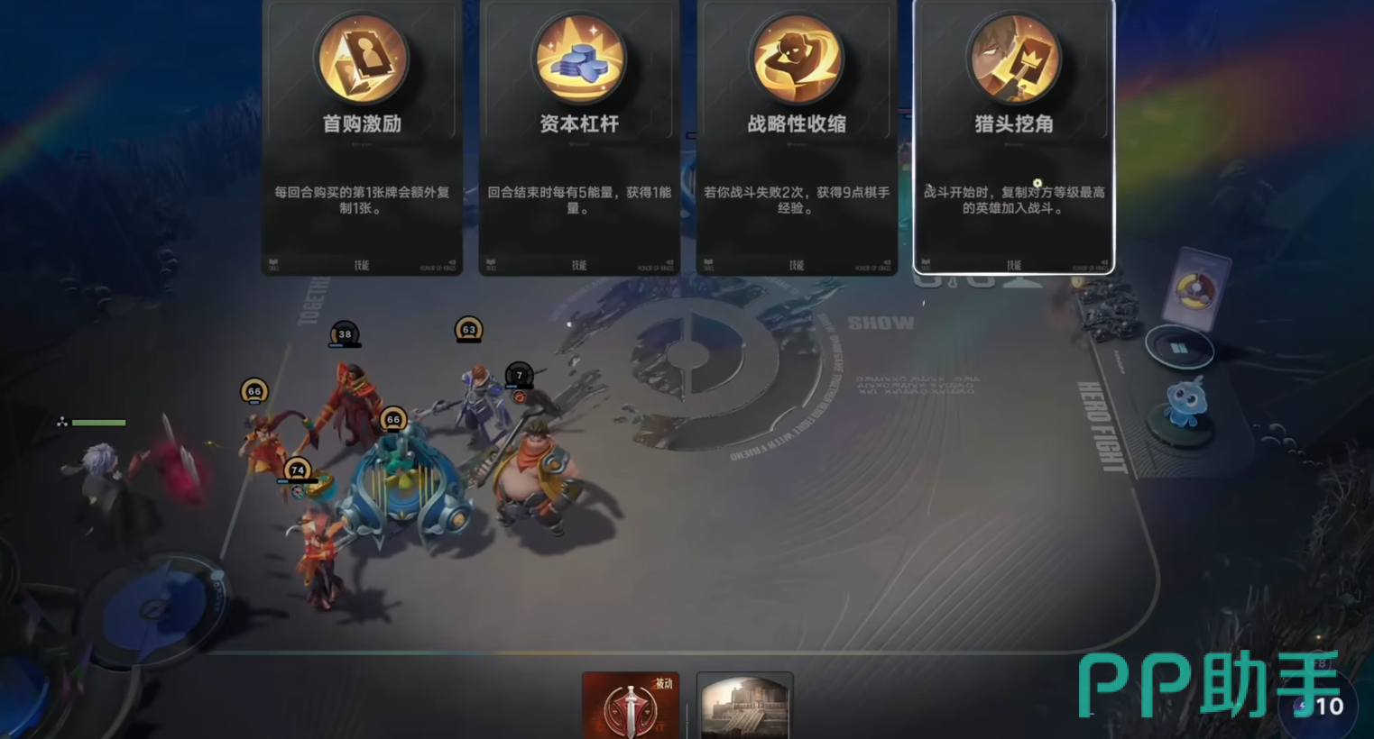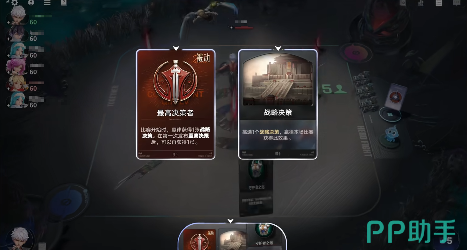 嬴律的棋手技能名为“最高决策者”。对局初始即自动获得1张专属手牌——“战略决策”,使用后可从若干随机选项中择一启用,效果全程持续至终局。可选方向包括:能量获取效率提升、经验转化率优化、场上己方英雄战力强化等关键维度,为整场对战奠定策略基调。