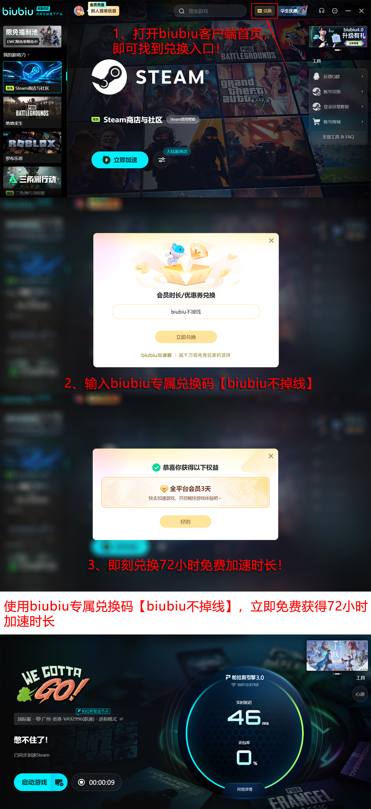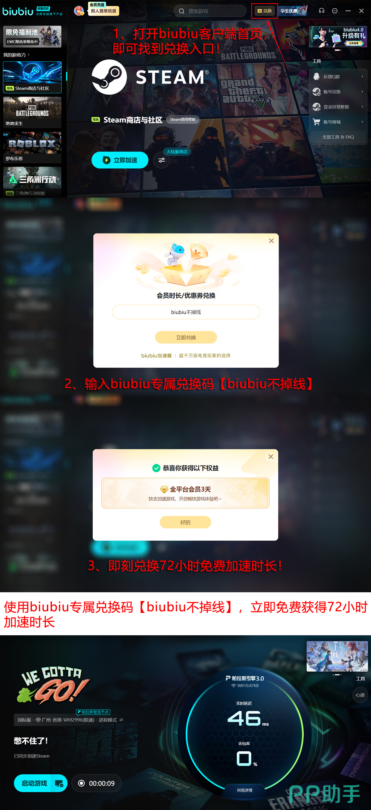 此外,为保障联机体验顺畅,官方推荐搭配使用biubiu加速器。该工具搭载帕拉斯3.0智能加速引擎,由阿里巴巴灵犀互娱技术团队深度优化,专为多人在线游戏设计,显著降低延迟、防止掉线。新用户注册后可直接领取24小时免费加速时长;另可通过礼包码【biubiu不掉线】额外获取72小时加速服务,总计可享96小时免费体验。
