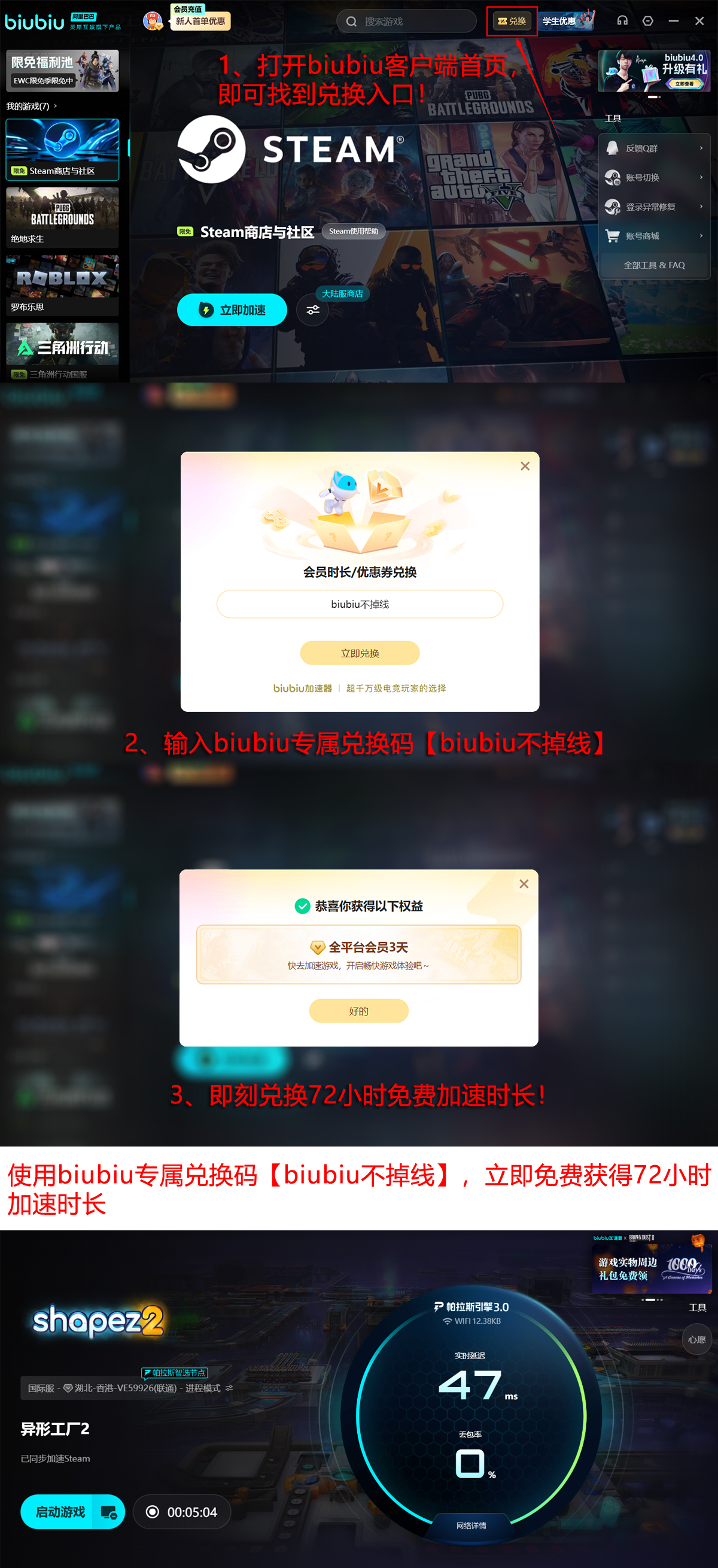 在Steam下载或更新过程中,部分用户可能遭遇连接不稳定、加载缓慢甚至页面刷新失败等问题。此时推荐使用biubiu加速器进行网络优化。该工具搭载自主研发的帕拉斯3.0加速引擎,由阿里巴巴灵犀互娱提供底层技术支持,支持Steam全链路协议加速,稳定性与响应效率经过大量实测验证。新用户完成注册并登录后,可立即领取24小时免费加速时长;另通过礼包码【biubiu不掉线】还可额外获取72小时使用权,总计达96小时无门槛加速体验。