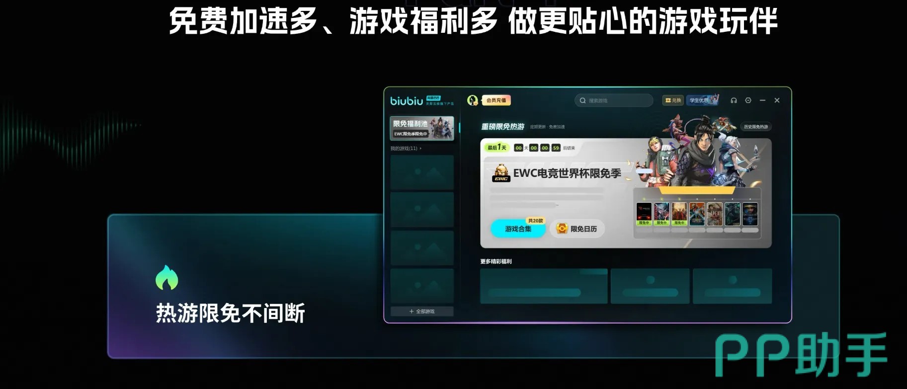 本次免费不限时加速活动已全面开放,biubiu凭借高性价比与行业领先的综合性能表现,成为跨平台游戏玩家首选网络优化工具。活动结束后,用户仍可访问内置限免专区,畅玩超3000款授权正版游戏资源。