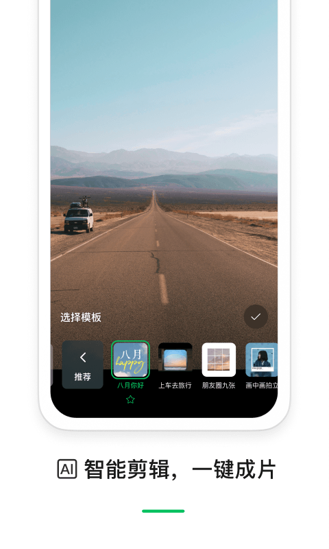 用它剪好的视频不用来回传文件,直接就能发到朋友圈、视频号,省了很多麻烦。它有个智能帮忙的功能很实用,拍说话的视频能自动识别声音,把字显示在屏幕上,不用手动一个字一个字打。传完拍的东西,它还能自动挑好看的片段,配上合适的bgm,就像有个专门的帮手在旁边帮忙整理,平时经常用微信发视频的人,用它最合适。