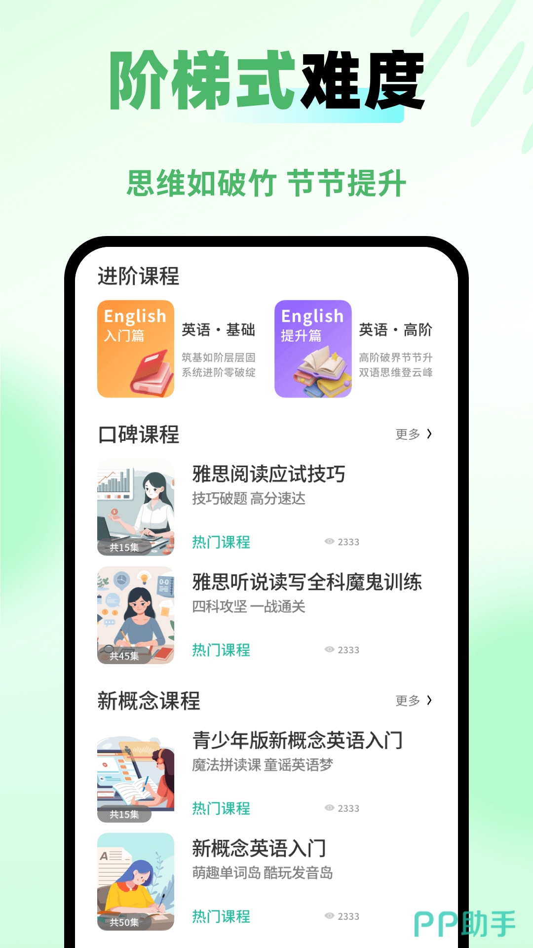 支持英语课本带读点读,覆盖高中课本英语、商务英语等功能,听说读写全面辅助。而且有超多高频英文词汇、10分钟简易开口带读小课程,每天持之以恒,轻松成为口语达人。