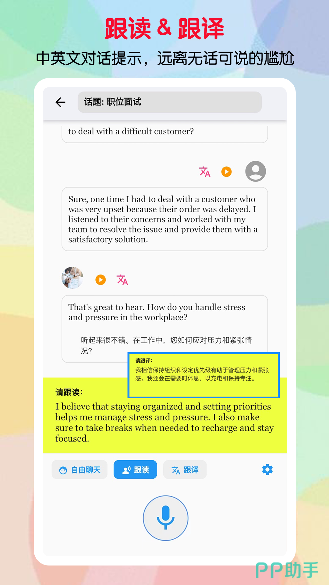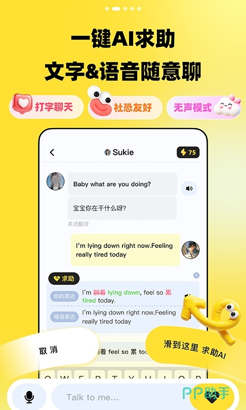 主打真实对话场景的AI口语陪练,通过智能语音识别和及时反馈系统,帮助用户在模拟对话中快速提升开口能力。覆盖日常出行、职场沟通和旅游应用等多种真实语境,内置突发场景模拟训练模块,帮你提前演练各种交流需求。