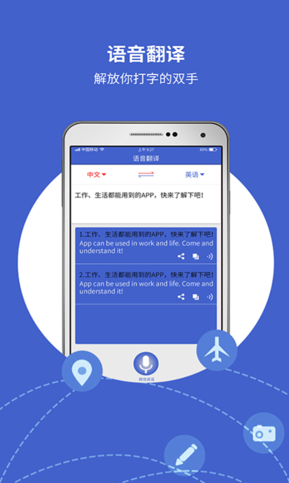 主打中英互译,但也支持300多种语言。页面设计得很干净,没有广告,一键切换语言,翻译结果可以复制分享,历史记录也能保存。语音翻译支持26种热门语种,嘈杂环境下识别率还不错,响应速度快,流量消耗也不大。拍照翻译支持19种语种,从相册选图或者直接拍都行,适合处理路牌菜单文档这些东西。