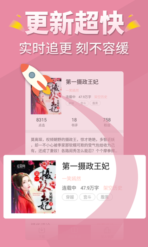 女性向言情阅读是主要方向,书库总量突破50万册。签约作者超过5万人,既有经典IP也有新人作品,题材结构比较清晰。动态推荐机制,会按照阅读行为推送作品,冷门高分专区,能发现优质小众言情。阅读体验做得不错,翻页响应速度快,没有插播广告,护眼模式覆盖全链路。AI语音朗读和自动滚屏,适配碎片化场景,社交化闺蜜书单功能,可以分享心得推荐好书,连续签到有奖励,界面设计贴合女性审美,操作比较简洁。
