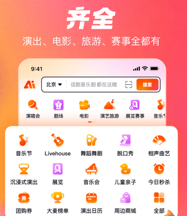 做线下演出起家的平台,在演唱会票务这块算是老大哥了。周杰伦、五月天这些一线艺人的巡演基本都在这上面开售,覆盖40多个娱乐细分品类,音乐节、脱口秀、体育赛事都有。抢票技术做得比较稳,操作流程简化过,支持先抢后付,同一个项目的多票价多数量可以合并支付。粉丝福利这块设置了专属通道,低价折扣票、免费看演出、限量数字藏品这些都有。