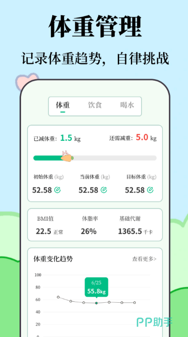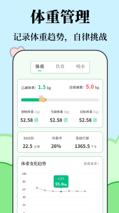 主打智能饮食管理,支持拍照识别食物成分,3秒内完成热量与营养素解析。数据库覆盖超百万种食品,兼容主流外卖平台订单一键导入。系统依据用户年龄、体重、目标自动规划三餐方案,并内置饮水提醒、加餐提示等功能。接入体脂秤后,可同步监测体脂率、肌肉量、基础代谢等核心指标,生成可视化健康趋势报告。社区板块聚合真实减重案例与打卡挑战活动,增强长期坚持动力。