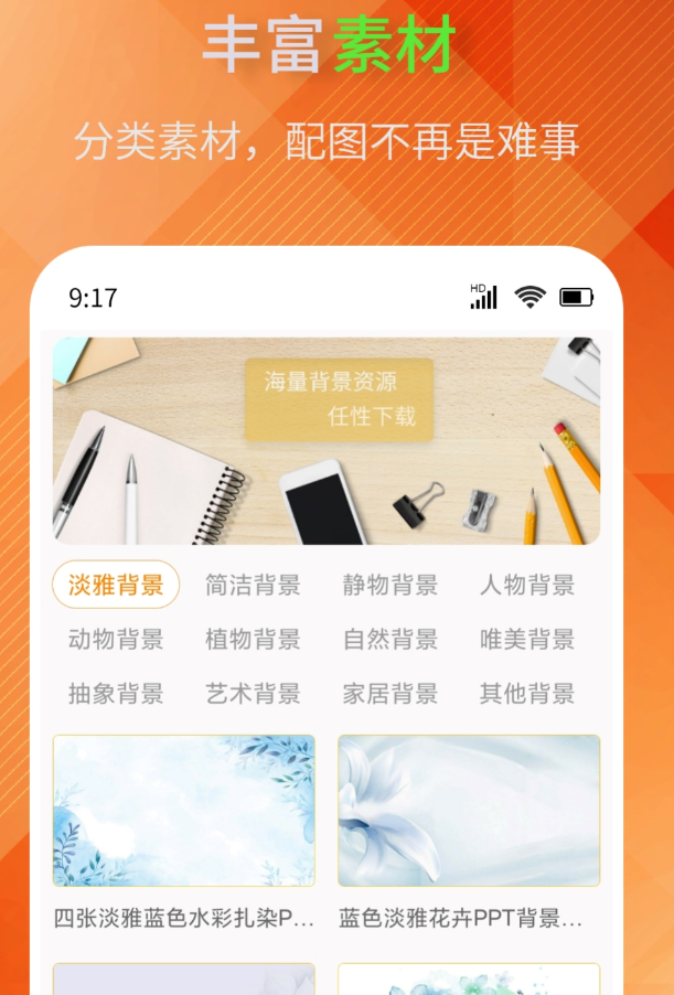 模板数量是主打卖点,风格分类做得很细,简约大气、经典商务、实用扁平、卡通可爱、中国风、科技感都有单独的分区。按使用场景筛选也很方便,工作汇报、课件制作、招聘展示、节日庆典这些标签可以快速定位需要的模板。下载后直接替换文字和图片就能用,不需要调整排版。模板都是免费下载,没有隐藏收费项目,下载后可以保存到本地,也能上传到电脑端继续编辑。