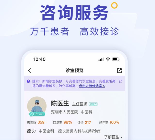 微博认证医生,在这里开设了个人诊室,覆盖了二十多个科室。问诊方式有图文、电话、视频可选,隐私通道是全封闭的,用户信息会自动隐藏。医生可以在线开方、管理患者档案,还能发布科普内容。公益咨询活动,固定在每月特定日期举办,免费提供专业建议。门诊预约和转诊加号功能,解决了挂号难的问题,健康档案管理,方便复诊时,查看历史记录。