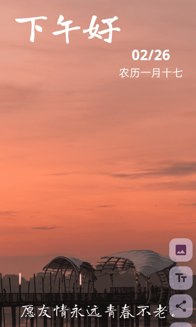 内置了近万张不同主题的高清图片,涵盖古风意境、节气物候、都市生活、自然风光,都是原创优质素材。文案资源包括早安祝福、晚安问候、友情文案、哲言、唐诗宋词、佛语人生等几千种内容,满足不同场景的问候需求。核心功能是文字、文案、图片三合一快速生成,几秒内就能完成专属早安图制作。