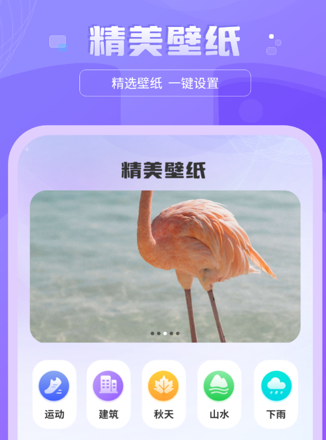 一键就能完成壁纸下载和设置,不需要手动裁剪,系统会自动识别手机分辨率、挖孔、刘海区域,精准适配屏幕,保留壁纸核心画面。资源涵盖自然风景、动漫、明星、萌宠、抽象、极简等风格,分类清晰,所有壁纸都经过筛选,确保画质清晰,没有水印和模糊现象。支持壁纸定时自动更换功能,可以自定义更换间隔。