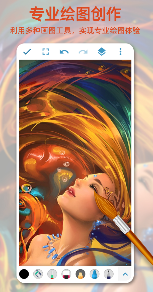 真实媒介质感是这款软件的特色,铅笔、蜡笔、毛笔、油画笔这些传统工具都做了独立建模。铅笔有灰阶过渡,蜡笔带刮擦肌理,毛笔能呈现水墨渗化效果,油画笔显示厚重堆叠感,落笔反馈接近真实绘画。压力感应、边缘扩散、干湿混合这些细节,都考虑到了,手绘体验做得到位。