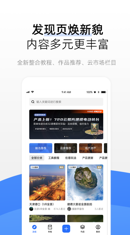 通过手机能够实现裸眼体验沉浸式VR的功能,有着全球范围内非常多全景的奇妙景观,除“云”旅游之外还能VR全景看房,还能去记录人物纪实,平时在日常中许多看不到的景观都能尽收眼底,签约了特别多的全球摄影师提供专业超清的全景拍摄,若是对全景图制作感兴趣的话也可以参与了解。
