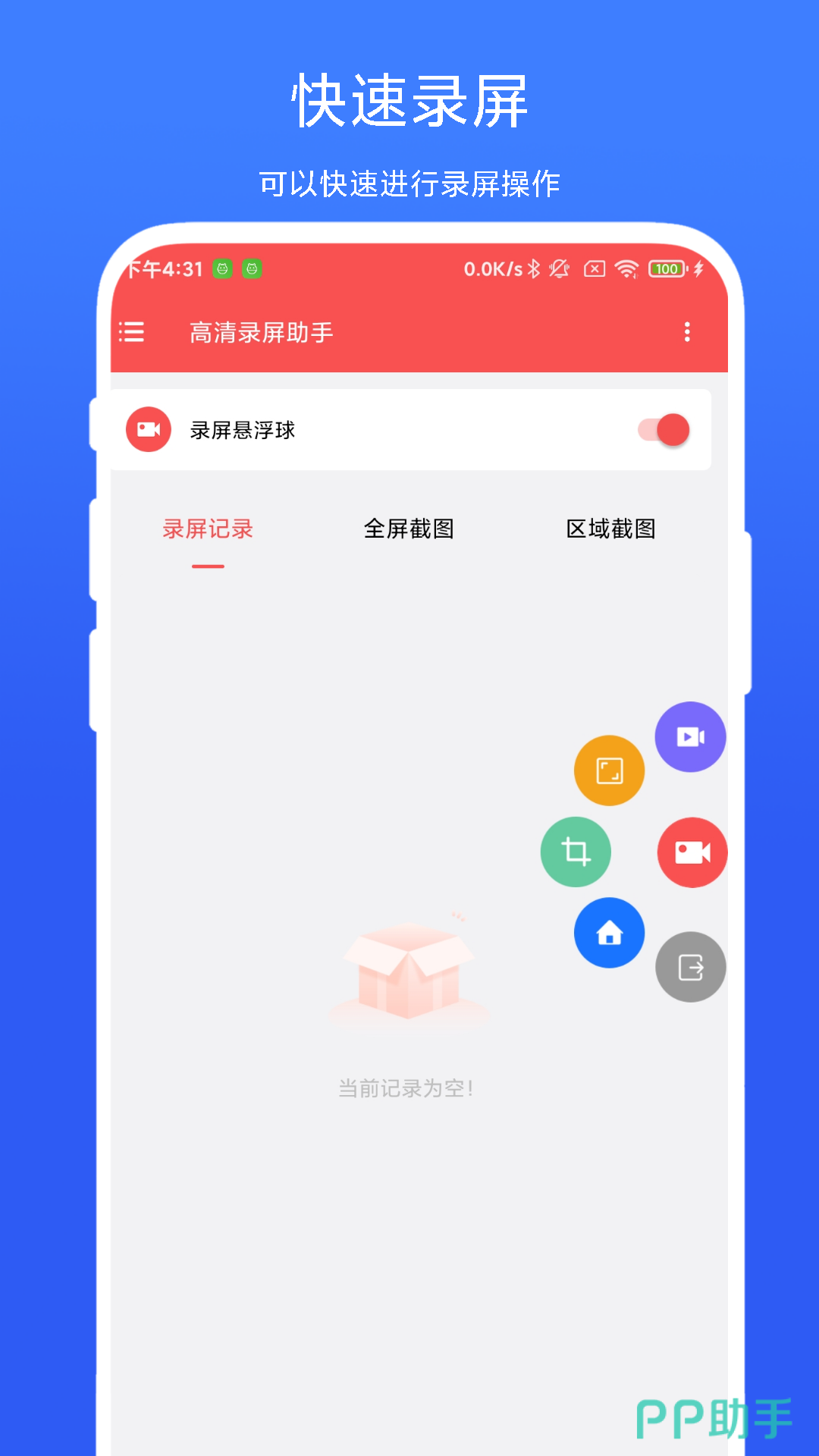既然是助手,它就好想大家生活中的一位隐形秘书,如果有需要录制的内容,用户只要点开悬浮球,选择自己需要的功能就可以轻松开始了!除此之外,该软件还可以进行截屏操作,不管是全屏还是局部,都可以哦!