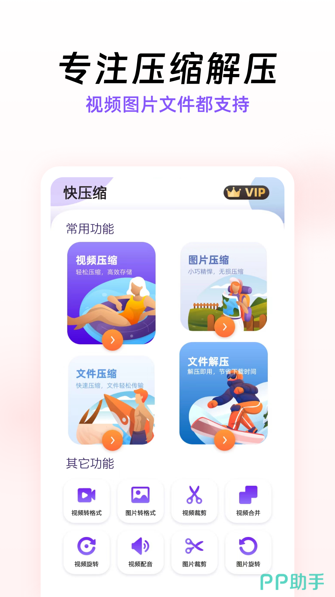 专注多媒体内容轻量化处理,图片压缩支持 JPEG 有损/无损双模式调节,提供“高保真”“均衡”“极致压缩”三级预设;视频压缩支持分辨率缩放(1080P→720P)、码率动态控制(2Mbps–8Mbps 可调)、关键帧间隔优化;内建简易图像编辑模块,含基础裁剪、旋转、亮度对比度微调,所有操作均在本地完成,不依赖云端服务。
