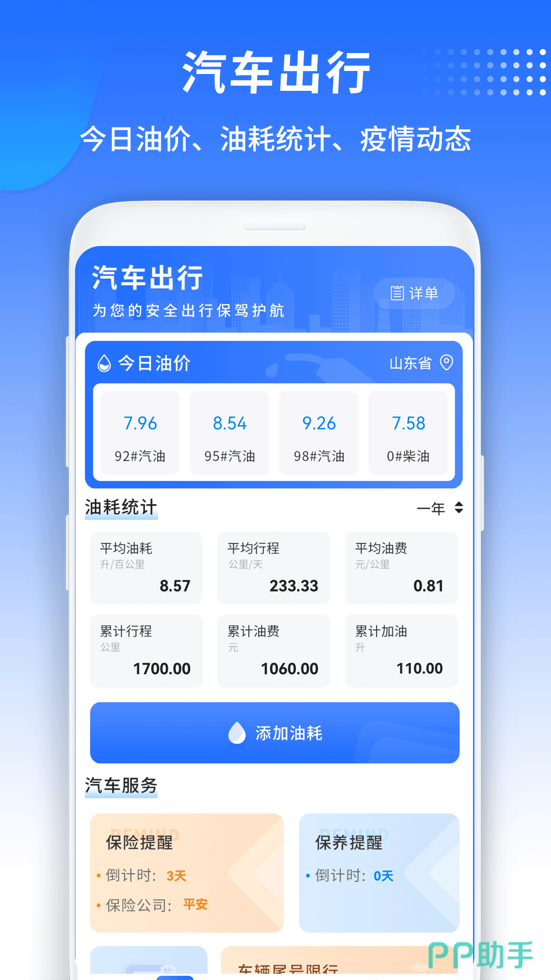 养车怕花冤枉钱?这款App简直是“车主的省钱军师”!今日油价实时查,油耗一键算,保险保养自动提醒,再也不用怕脱保、错过保养!限行尾号、车检时间一键查,出门再也不怕吃罚单!从加油到年检,全程帮你精打细算,这波“养车不踩坑”的快乐,不冲真的亏到拍大腿!