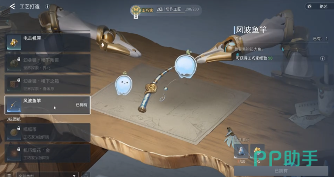 第一个条件就是选对鱼竿,普通的鱼竿没有办法触发稀有鱼的垂钓机制。需要使用风波鱼竿,这就是基础的条件。当然这一个鱼竿并不是来到商城购买,而是需要玩家自己去制作。制作的地点是在树脂机处,所需材料为宣徽石和凡铁石,这两种材料在获取时没有什么太多的难度,在地图中探索或者是采集就可以获得。在制作完成之后才算是具备了垂钓稀有鱼的基本资格,这一步千万不能节省。