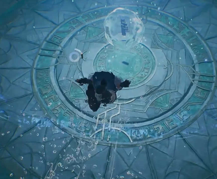 一些玩家第一次下水可能找不到祭坛,这种情况可以浮上来换口气,然后重新下潜。或者调整一下视角,往下看底部地形,祭坛顶上刻着云纹图案,比较好认。千万别以为符印在宝箱里,那个宝箱只是流程中的一环,真正的符印必须去水下拿。