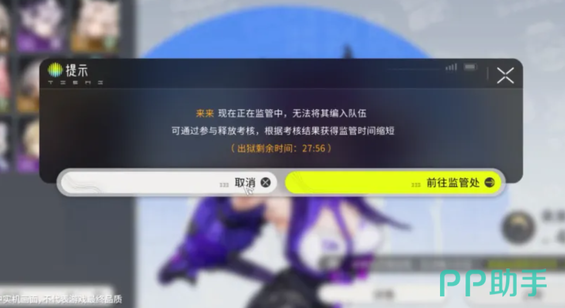 为了重新获得自由,玩家要经过“释放考核”,从而缩减监管时间。这是种非常有特色的游戏,考核内容一般为交通法规、社会常识或者道德判断等内容。系统会询问“当收银员多找了一块钱应该怎样处理”,只有玩家做出正确的道德选择或者回答正确才能减少剩余的监管时间。寓教于乐的惩罚方式既减轻了被关押者的挫败感,又增加了游戏的趣味性,在“坐牢”的同时也能体会到别样的乐趣。