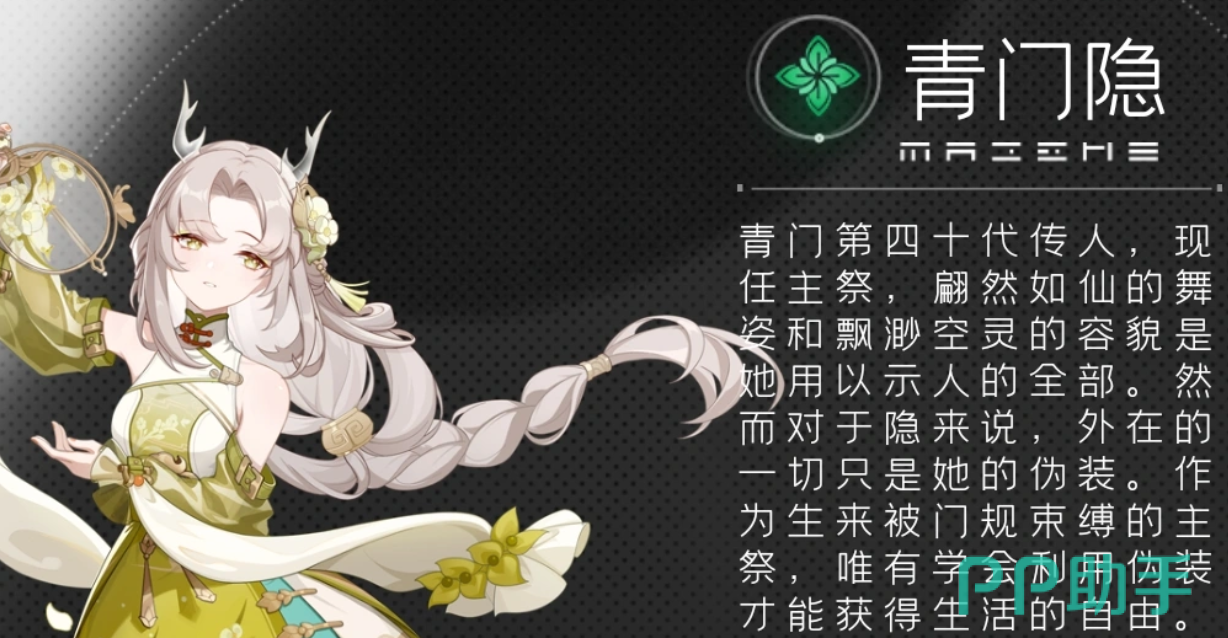 青门隐是木系辅助型的典型代表人物,在队伍里起到不可替代的中流砥柱作用。她可以在距离较远的地方起到辅助的作用,技能组合具有很强的策略性,有群体负面状态驱散、生命回复、多段控制的效果。技能树的加点应该先加强治疗技能的覆盖范围和持续时间,因为她的主要价值就是提高整个队伍的生存容错率。青门隐在高压环境的副本战中可以很好地控制住自己的战斗节奏,依靠源源不断的回复速度来抵挡敌人的猛攻,从而保证队伍有条不紊地过关。