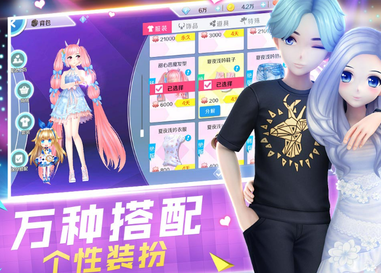 音舞结合解锁新体验,社交互动更具温暖度,里面配置了超多的系统模块,可以发送情书来确定情侣关系,举办盛大的婚礼,孕育宝宝并一起旅行,还能组建队伍参与练习生出道。对里面还有时装以及坐骑可以选择,既能享受音乐舞蹈的快乐,又能收获真挚的感情。