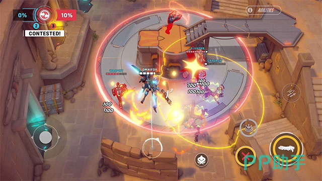 在视角与操控层面,本作彻底告别传统FPS的第一人称射击模式,转而采用俯视视角搭配双虚拟摇杆操作方案。系统内置智能辅助瞄准功能,显著降低射击精度门槛——即使缺乏长期射击训练的玩家,也能通过该机制实现稳定命中。这一设计让操作重心自然转向走位预判、技能衔接与战场资源调度等策略维度。