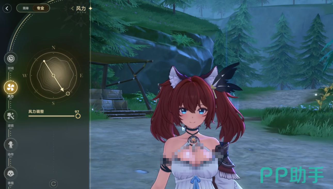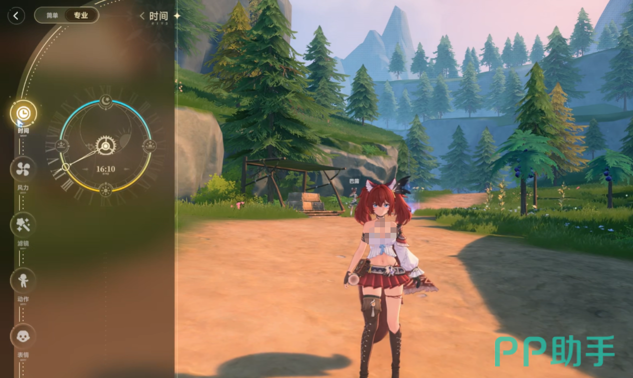 进阶用户可启用“专业模式”,实现对场景氛围的深度掌控。其中,“时间调节”功能允许实时更改当前世界的时间状态,无需等待昼夜更替;“风力设置”则影响环境动态效果——增大风力后,植被摇曳幅度增强,角色衣饰亦随之自然飘动,显著提升画面真实感。