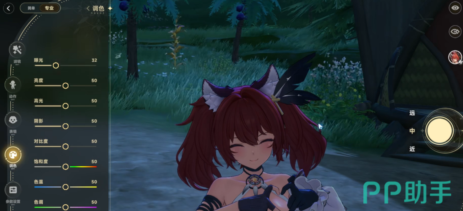 相机还内置六款风格化滤镜,覆盖清新、胶片、复古等多种视觉倾向,支持通过强度滑杆精细调控应用程度。此外,角色动作库涵盖挥手、比心、点赞等常用交互姿态,表情系统亦支持即时切换;所有动作均可设定执行时长,例如将鞠躬动作暂停于半程状态并完成抓拍。画面色调方面,曝光、亮度、高光、饱和度等核心参数均开放手动调节,确保最终成像精准还原理想效果。