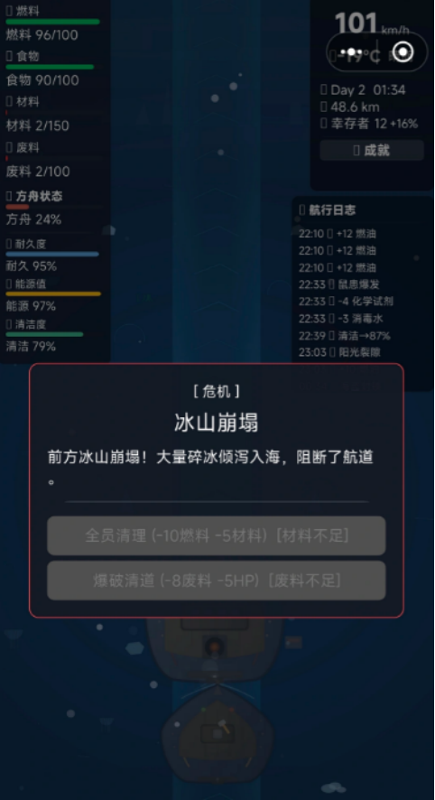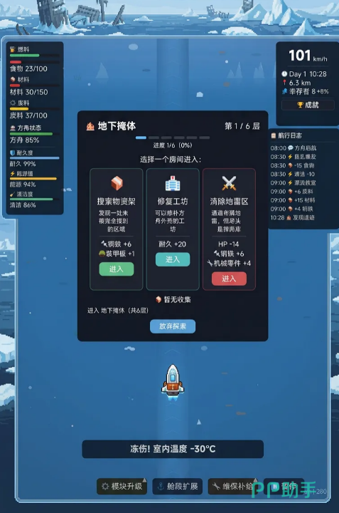 融合生存建造、策略调度与轻度RPG成长体系,游戏强调资源转化效率与风险权衡。例如:派遣队伍深入高危区可能获得稀有蓝图,但低温暴露值累积过快将导致队员失温减员;选择优先扩建温室可提升食物产能,却会延缓护盾发生器的研发进度。每一次决策都推动方舟向不同进化路径延伸,最终塑造独一无二的人类方舟文明形态。