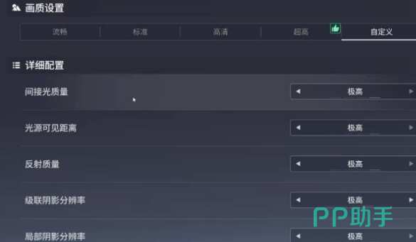锐化强度需严格控制在10–30区间。超出此范围易引发边缘过度增强现象,导致画面呈现不自然的“描边”效果,长时间游玩易造成视觉疲劳。间接光质量可无保留设为极高,该项对环境光影层次与整体沉浸感提升显著;阴影质量设定为“高”即可,更高档位对性能消耗较大而观感增益有限。